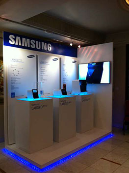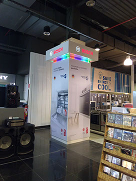 Desde un tótem con su logo, hasta un llamativo stand para esa feria en la que quiere destacar.